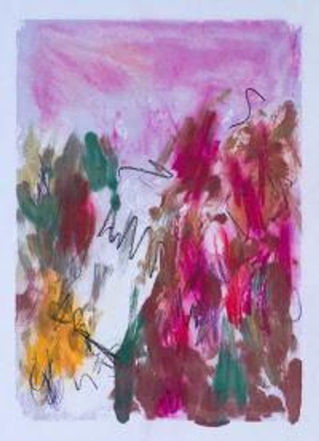Original piece created using printmaking, charcoal and pastel. ARTIST STATEMENT: This piece was part of a broad body of work in response to the Pleinmont landscape. The changing of colours within the landscape through each season has notably guided my choice of colour. The dominant purples and reds are heavily inspired by the dark, saturated ferns that develop in the wetter stages of winter, opposing the burnt orange ferns of summer. Having been predominantly inspired by the poetic oeuvre of Cy Twombly, the work may not accurately depict a soaked Pleinmont headland, but rather I intended to harness the ‘feeling’ of being immersed within the landscape. Wind, foliage, birdsong, ferns rustling and colour all blend into one. ABOUT THE ARTIST: Aged 18 when this piece was created, Cahir was shortlisted for the SAF Students Prize, Guernsey in 2018 and 2020. Cahir has continued to maintain his creative interests alongside his studies at university in Scotland.